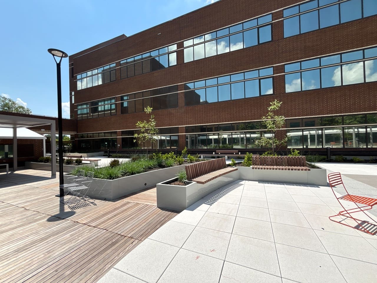 Another successful project completed in partnership with Baker Roofing Company on the FedEx campus in Memphis, TN. This project transformed an underutilized courtyard that had exceeded 40 years of service life into a modern rooftop amenity designed for daily use, long-term performance, and visual appeal.